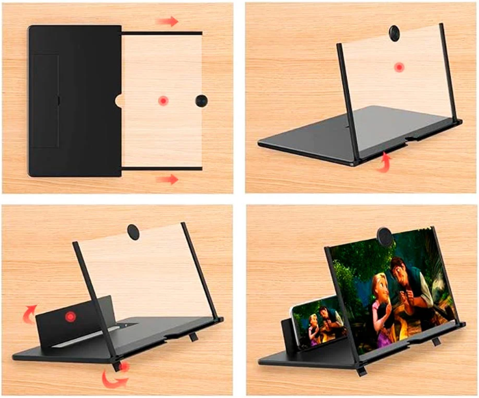 - Posiciona tu Teléfono 📱➡️: Coloca tu celular en la base ajustable, asegurándote de que esté bien alineado con la lente para una imagen perfecta.